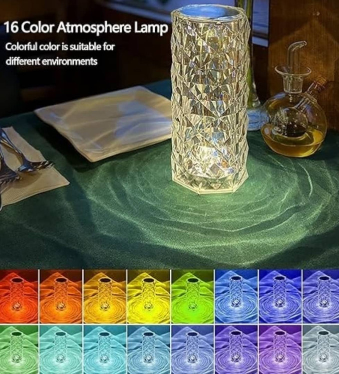 چراغ رومیزی کریستالی نور بسیار رمانتیک و گرمی را هنگام روشن شدن ایجاد می کند.