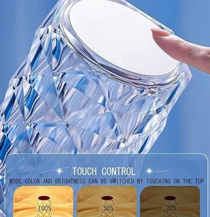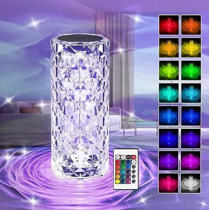 سوئیچ کنترل و شارژ USB: این لامپ الماس کریستالی مجهز به ریموت کنترل است که می تواند تغییر 16 رنگ، 4 حالت روشنایی و 7 سطح روشنایی را کنترل کند. همچنین می توانید بالای لامپ را برای خاموش/روشن کردن و تنظیم رنگ نور لمس کنید.