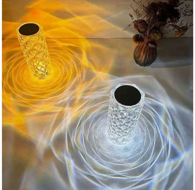 هنگامیکه این چراغ رومیزی را روشن کنید، جلوه بصری سه بعدی مانند گل رز است که روی میز می شکفد و برش مربعی نور و سایه را مانند الماس یا سایه ای به شکل گل رز را منعکس می کند. این چراغ رومیزی، کریستالی ساده، مجلل، راحت و رمانتیک است و مناسب برای خانواده، بالکن، مهمانی، میز میباشد.