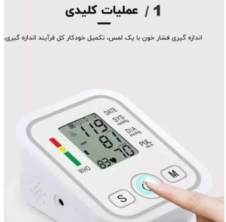 این دستگاه برای فشار خون و ضربان قلب استفاده می شود. دستگاه دارای یک صفحه نمایش LCD است که فشار خون سیستولیک و دیاستولیک و همچنین ضربان قلب را نمایش می دهد