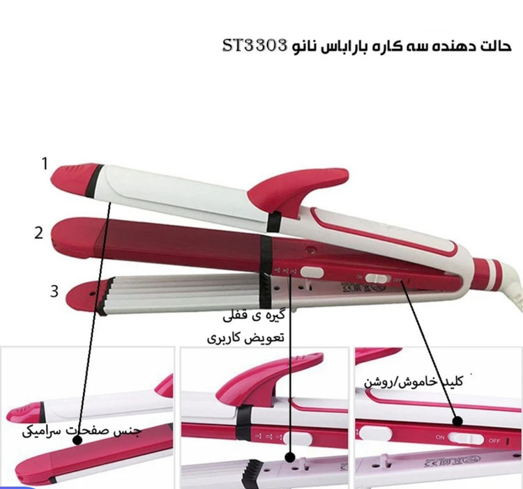 اتو مو و حالت دهنده ۳ کاره مو مدل KM-3304