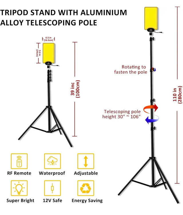 پایه این چراغ که یک لنسر سبک است بصورت تلسکوپی باز می شود و تا ارتفاع ۳ متر قابل افزایش و از استحکام قابل قبولی برخوردار است.