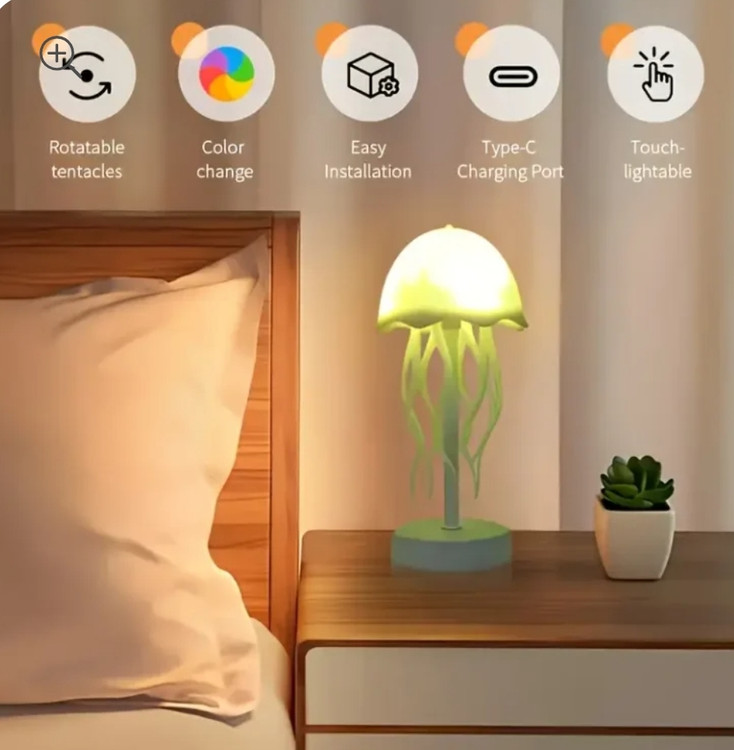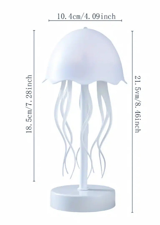 طراحی این محصول بهگونهای است که عروس دریایی دکوری در فضای داخلی آن بهصورت معلق و شناور ظاهر میشود. هنگام روشن شدن چراغ، جلوهای رویایی در محیط ایجاد میشود که برای اتاقخواب، اتاق کودک یا فضاهای آرامبخش بسیار مناسب است.