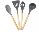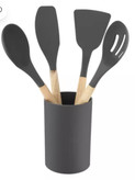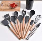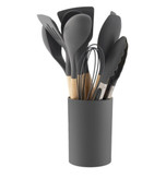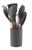 سرویس کفگیر و ملاقه سیلیکونی 12 پارچه طوسی دسته چوبی Kitchen Set