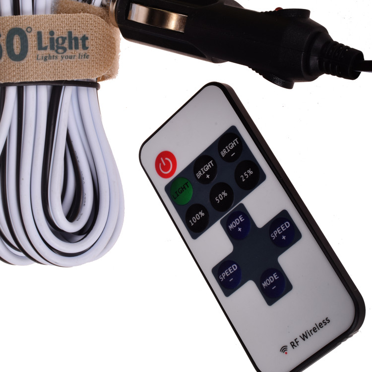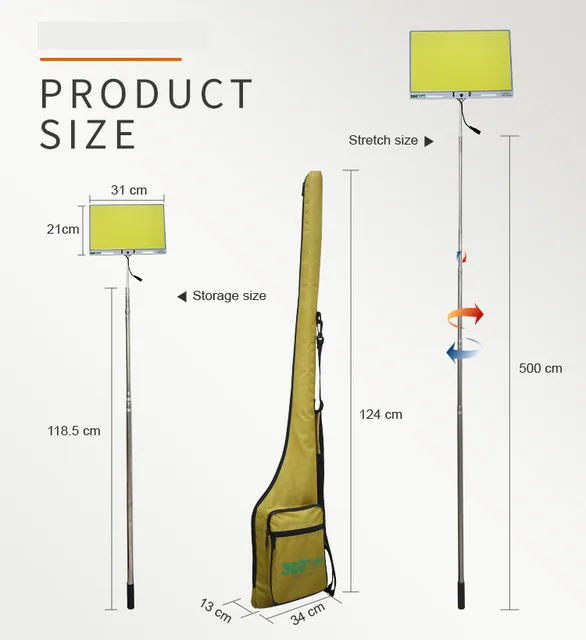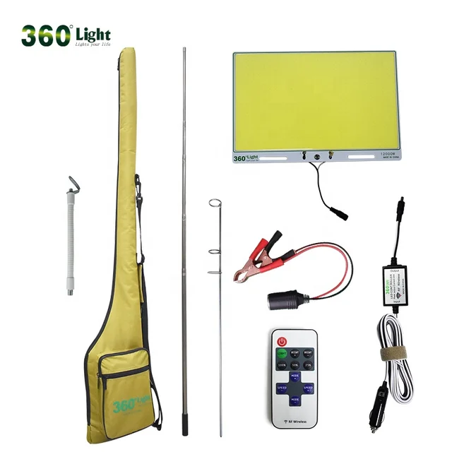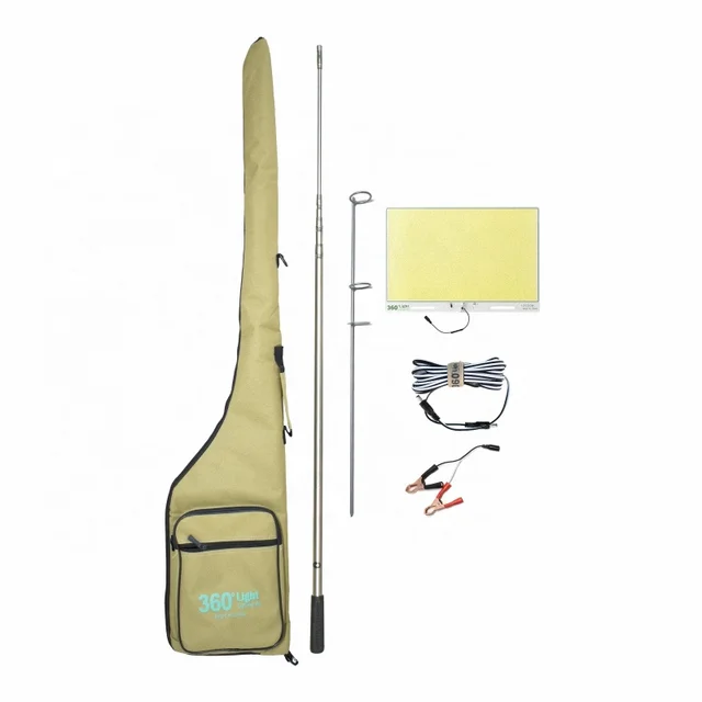 چراغ روشنایی کمپینگ 360 درجه لایت تلسکوپی، که به آن چراغ لنسری یا ماهیگیری (Fishing Light) نیز گفته می شود، وسیله ای مناسب جهت کمپینگ، مسافرت، لامپ تعمیر خودرو، روشنایی فضای باز و محیط های تاریک می باشد. چراغ کمپینگ با ریموت کنترلی که دارد یکی از محصولات پرطرفدار و پرکاربرد برای کسانی که قصد سفر و کمپینگ دارند به حساب می رود. پایه این چراغ که یک لنسر سبک است بصورت تلسکوپی باز می شود و تا ارتفاع 5 متر قابل افزایش و از استحکام قابل قبولی برخوردار است. یکی از مزایای این چراغ، پایه مستحکم فلزی قابل تنظیم در قسمت زیر آن می باشد که قادر است در زمین فرو رود و لنسر درون آن قرار گیرد تا چراغ به حالت ایستاده استفاده شود. کابل بلند این کمپینگ لایت به طور مستقیم و با دو گیره اتصال مخصوص، به باتری خودرو متصل می گردد. چراغ کمپینگ تلسکوپی با کنترل از راه دور، به شما این امکان را میدهد تا در مواقع ضروری و یا در کمپ ها و همچنین پیک نیک های خود، منبع نوری فوق العاده ای داشته باشید و با قابلیت افزایش ارتفاع آن می توانید نور را از بالا و در ارتفاع قرار دهید تا بیشترین فضای ممکن را روشن نمایید. با داشتن کنترل از راه دور، برای کم کردن و یا خاموش و روشن نمودن دستگاه نیازی به نزدیک شدن به اتصالات و یا دستگاه نداشته و به راحتی و از راه دور و حداکثر فاصله 15 متری آن را انجام خواهید داد.