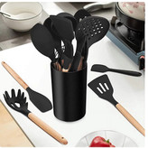 سرویس کفگیر و ملاقه سیلیکونی 12 پارچه مشکی دسته چوبی Kitchen Set